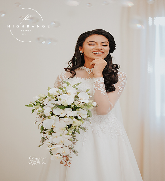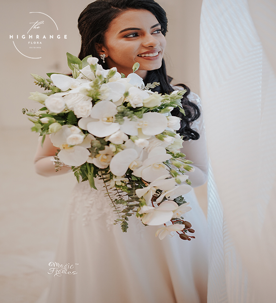 Indulge in luxury with our Opulent Orchid Cascade bouquet. Featuring lifelike silk orchids cascading gracefully, accented with faux pearls and delicate foliage, this bouquet is a symbol of elegance and sophistication.